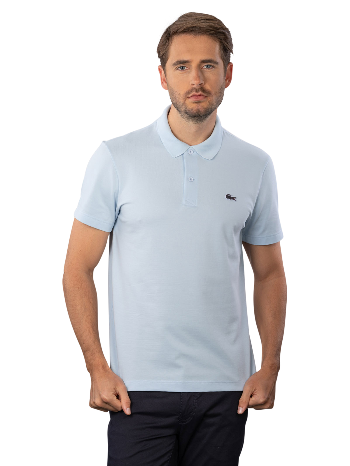 Das Lacoste Polo Shirt Regular Fit in Hellblau bietet einen klassischen Polo-Kragen und eine bequeme Passform. Es ist aus einer Mischung von Bio-Baumwolle, Polyester und Elasthan gefertigt, was für einen angenehmen Tragekomfort sorgt. Das Shirt kann bei 30°C im Normalwaschgang gewaschen werden und ist pflegeleicht. Es eignet sich für Freizeitaktivitäten und legere Anlässe, wobei es gleichzeitig einen sportlichen Look vermittelt.