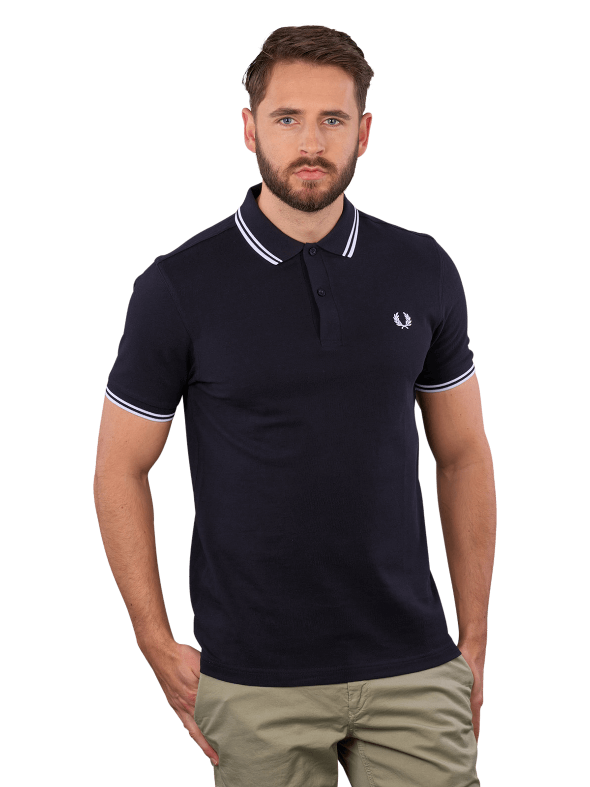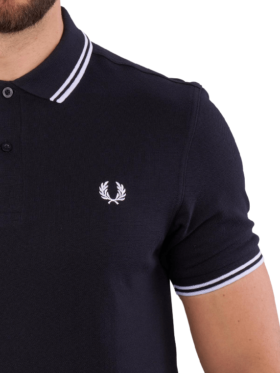 Sportlich und klassisch zugleich wirkt das Fred Perry Polo Piqué im Farbton Navy. Das Shirt aus reiner Baumwolle besitzt doppelte Kontraststreifen an Rippstrickbündchen und Kragen. Auf der Brust ist ein gesticktes Logo in Form eines Lorbeerkranzes zu sehen.