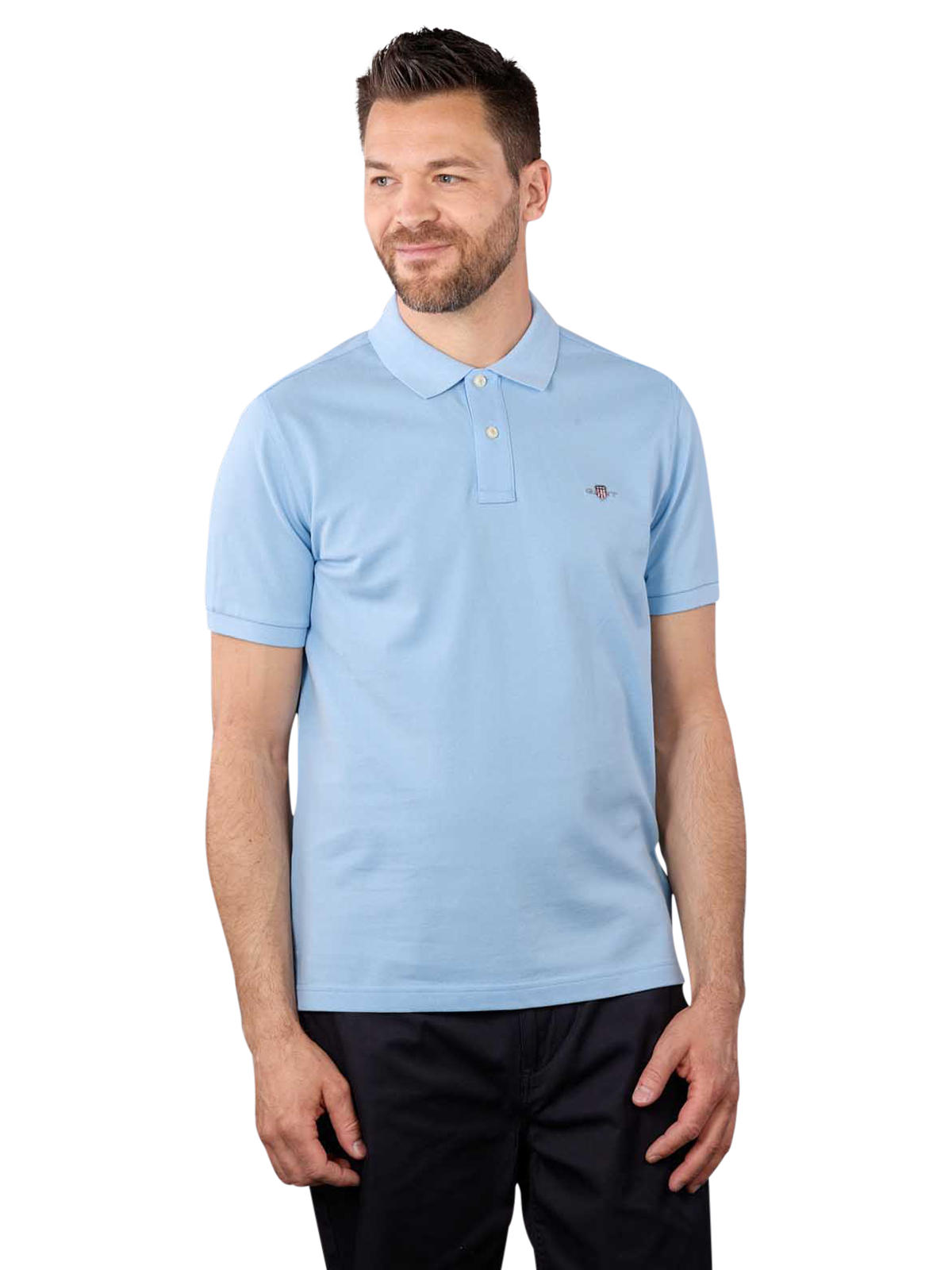Klassisches Polo-Hemd für Herren. Das gerade geschnittene Gant Regular Shield Polo Shirt Piqué in der Passform Regular Fit passt zu allen Gelegenheiten! Es hat den traditionellen Flachstrickkragen mit Knopfleiste, kurze Seitenschlitze und das GANT-Logo als dezente Stickerei auf der Brust. Es besteht aus 97% Baumwolle und 3% Elasthan für mehr Komfort im Sitz.