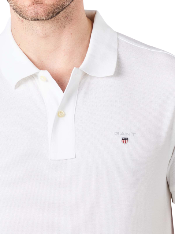 Klassisch, schlicht, leger und ein absolutes Must Have für den sportlichen Mann ist das Gant The Original Pique SS Rugger Polo Shirt white. Weisse Baumwolle in feiner Piqué Struktur sind ebenso typisch für das Shirt, wie die kurze Knopfleiste, die Bündchen der kurzen Ärmel und der gestrickte Kragen.
