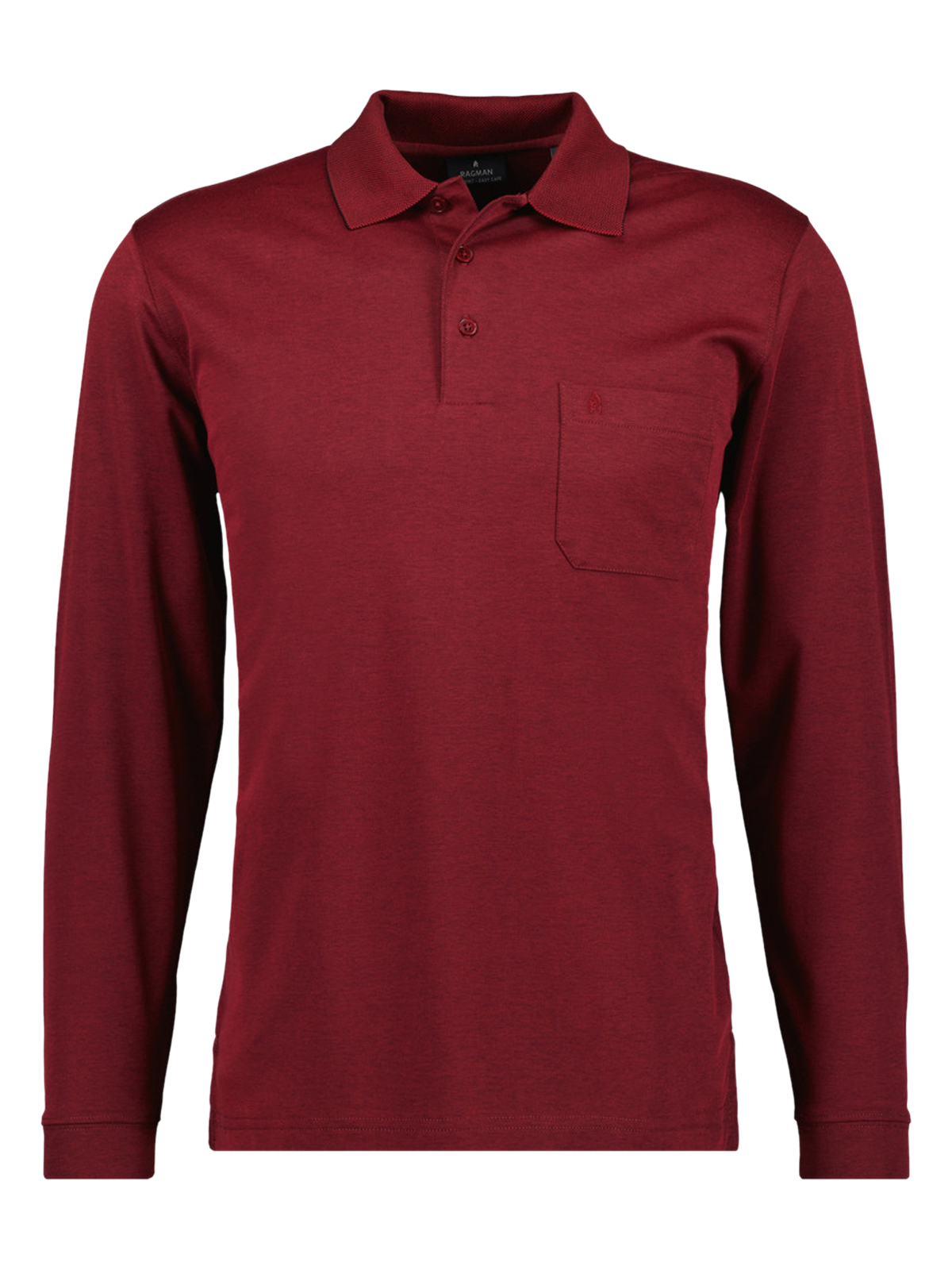 Dieses Ragman Polo ist in der Passform Regular Fit geschnitten und besitzt lange Arme. Dieses Polo-Shirt hat eine schöne rote Farbe in Uni und verfügt über eine Brusttasche sowie ein dezentes Logo. Gehalten ist dieses Ragman Polo im Casual-Stil. Mit einem Baumwollanteil von 70 Prozent und einem 30-prozentigen Polyesteranteil ist das Ragman Polo leicht zu pflegen und bei bis zu 30 Grad in der Waschmaschine gereinigt werden.