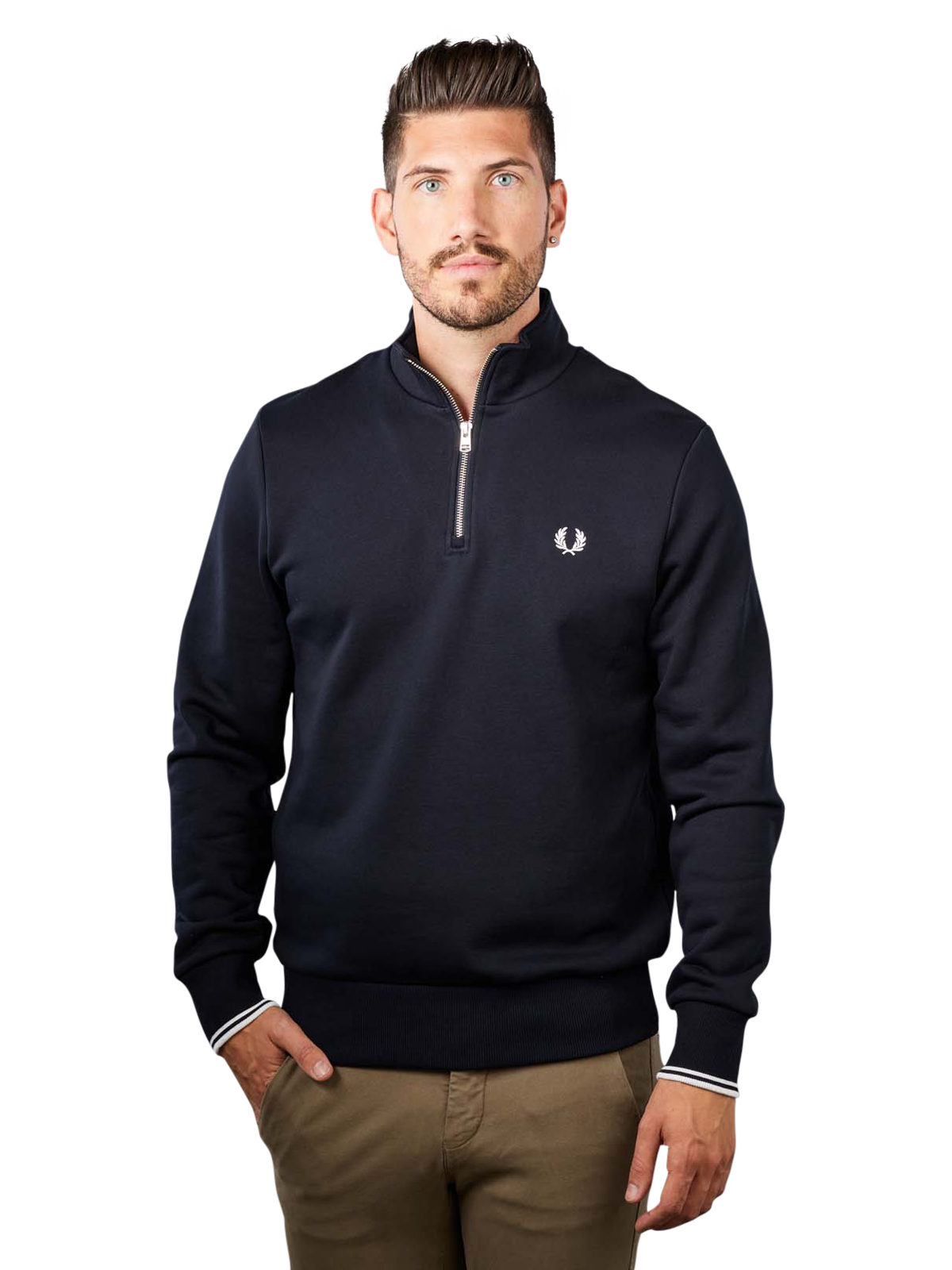 Das Fred Perry Classic Sweatshirt hat einen Reissverschluss am Halsausschnitt. Dieses schöne Detail gibt dem Sweatshirt einen besonders lockeren Look. Es besteht aus Baumwolle und Polyester und sorgt damit für ein besonders bequemes Tragegefühl. Er ist im Schnitt Regular Fit.