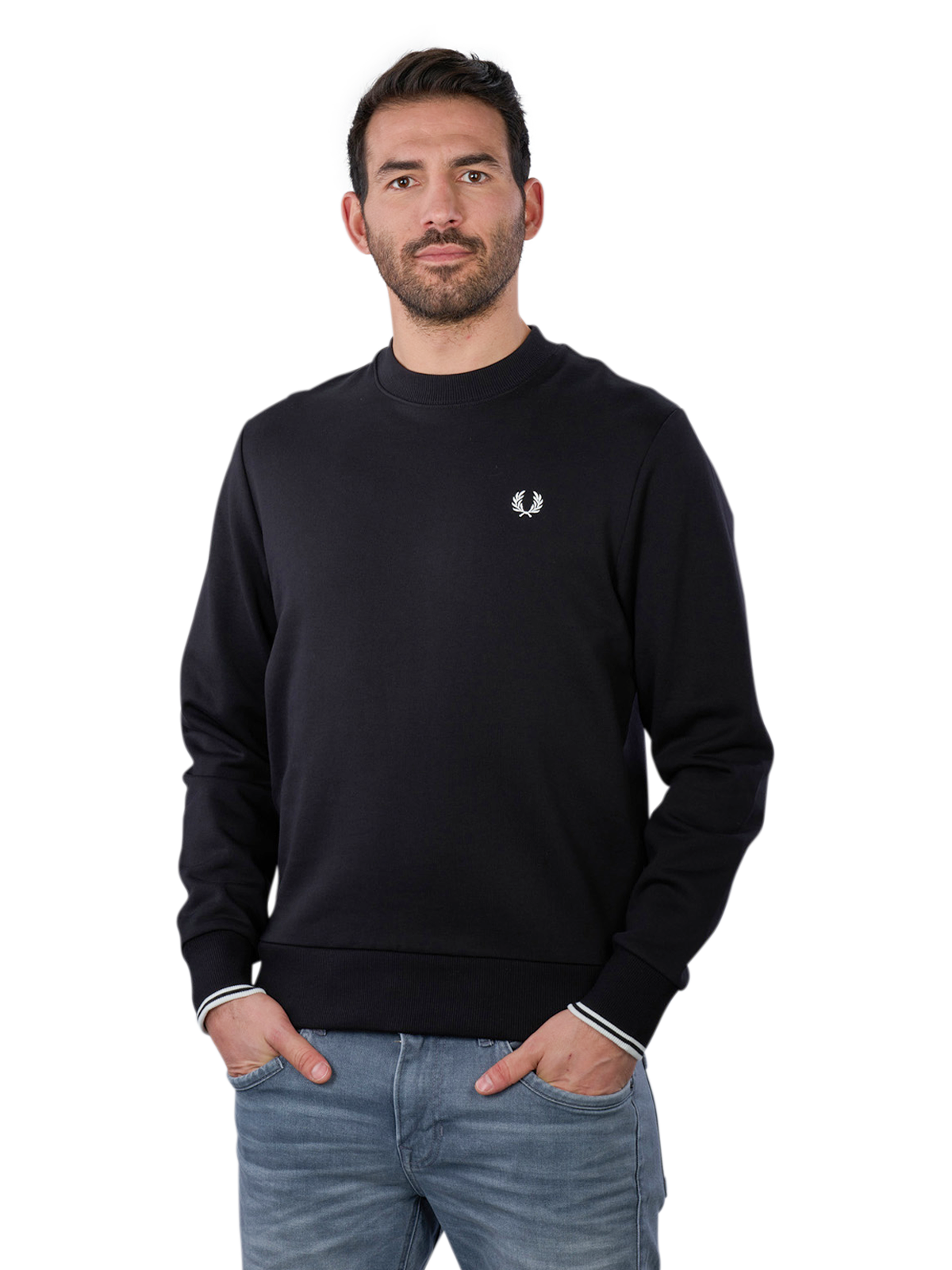 Dieser regulär geschnittene Pulli in klassischem Schwarz besteht aus einer Baumwoll-Polyester Mischung. Alle Öffnungen sind mit Stretch-Material ausgestattet, damit er immer perfekt sitzt. Die weissen Ärmelenden sorgen für den nötigen Kontrast und das Logo von Fred Perry rundet das elegante Gesamtbild als Stickerei auf der Brust ab.