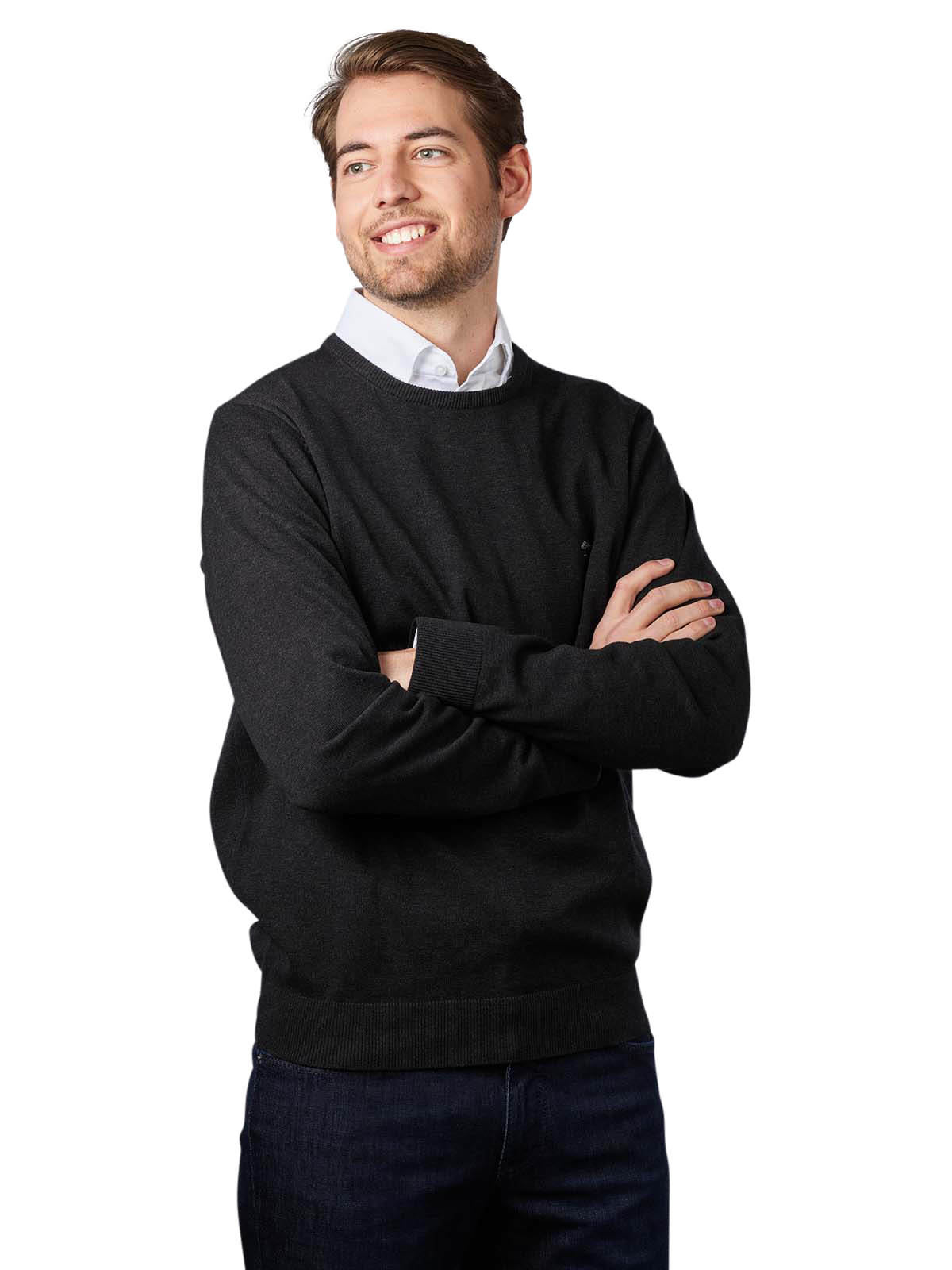 Der klassische Pullover für Herren von Fynch-Hatton ist dank der reinen Baumwolle sehr angenehm zu tragen. Baumwolle ist robust, feuchtigkeitsregulierend, temperaturausgleichend und pflegeleicht. Dadurch kann der Pullover mit dem dezenten Rundhalsausschnitt bei 30 Grad in der Maschine gewaschen werden. Optisch besticht der langärmelige Pullover durch die gerade eingesetzten Ärmel, einer angenehmen Weite in Regular Fit und Bündchen an den Ärmeln und am Bund.