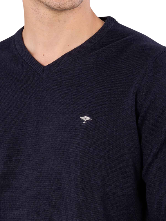 Der Fynch-Hatton V-Neck Sweater navy ist ein Basic mit Stil. Durch das edle und schlichte Design aus hochwertigem Material passt dieser Feinstrickpullover zum relaxten Business-Outfit mit Hemd und zum sportlichen Style mit Jeans. Für Lebendigkeit sorgt das dezent melierte Garn.