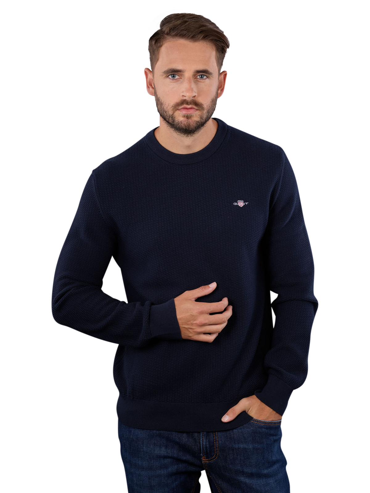 Gant Cotton Micro Textured Pullover Crew Neck