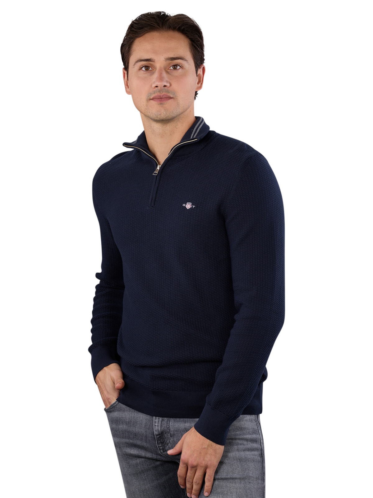 Gant Cotton Micro Textured Pullover Half Zip