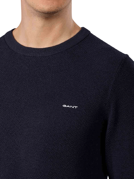 Diese Gant Pique-Pullover in der schönen Farbe Evening Blue besitzt einen klassischen Rundhalsausschnitt und ist insgesamt unifarben. Das Gant-Logo ist bei dem Pullover mit langen Ärmeln auf der linken Brustseite dezent sichtbar. Der im Casual-Stil gehaltene Gant Pique-Pullover ist in der Passform Regular Fit geschnitten und sitzt daher sehr bequem. Hergestellt ist der Strickpullover aus 100 Prozent Baumwolle. Er ist pflegeleicht und kann bei 40 Grad im Schonwaschgang gewaschen werden.