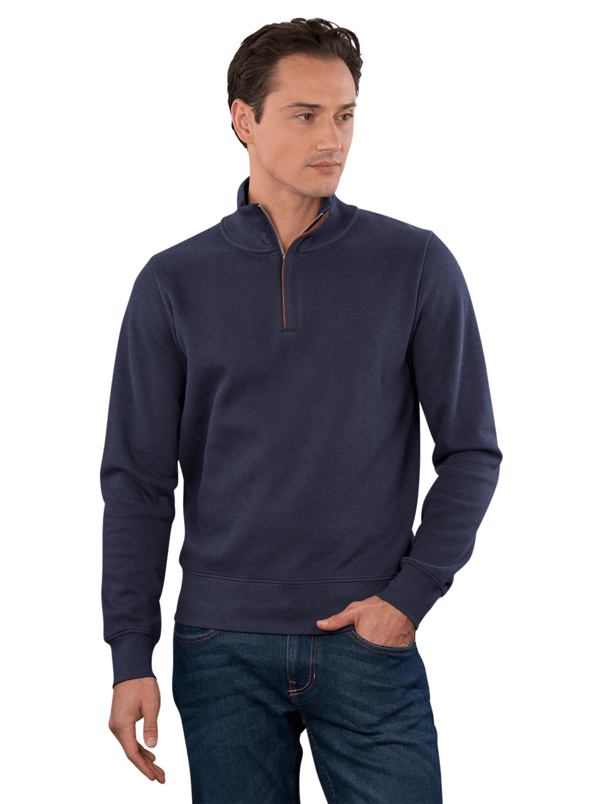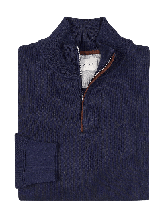 Der Gant Pullover Half Zip Sacker Rib in Persian Blue bietet eine mittlere blaue Farbgebung und einen praktischen Reissverschlusskragen. Er ist aus 100% Baumwolle gefertigt und eignet sich für die Maschinenwäsche bei 40°C. Dieser Pullover kombiniert Komfort mit einem sportlichen Look und kann vielseitig kombiniert werden, sei es für entspannte Wochenenden oder legere Büro-Outfits.