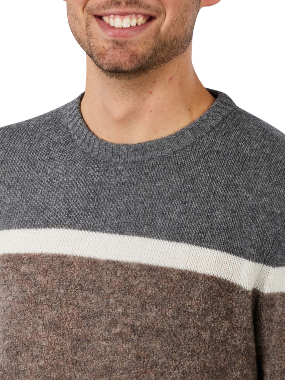 Der edle Herrenpullover Paulino von dem Label Joop begeistert mit seinem modischen Blockstreifendesign in einem Grau-, einem Braun- und einem Weisston. Ausgestattet ist das Modell in Regular Fit mit einem klassischen Rundhalskragen, gerippten Abschlüssen und einer dezenten, stilvollen Logo-Plakette. Dieser gestrickte Pullover ist aus 36 % Polyamid, 34 % Wolle, 26 % Viskose und 4 % Kaschmir gefertigt und hat ein angenehmes Tragegefühl.