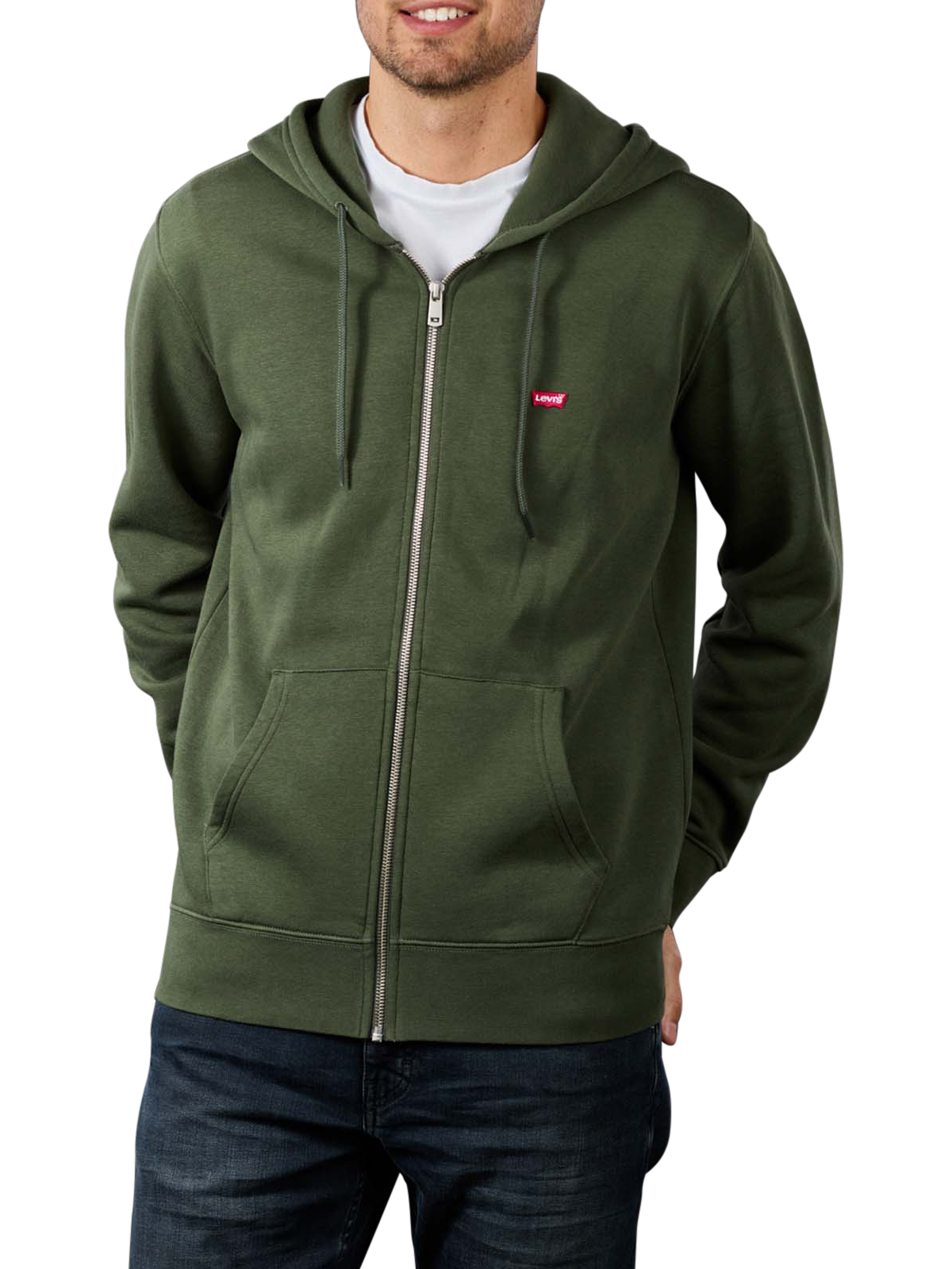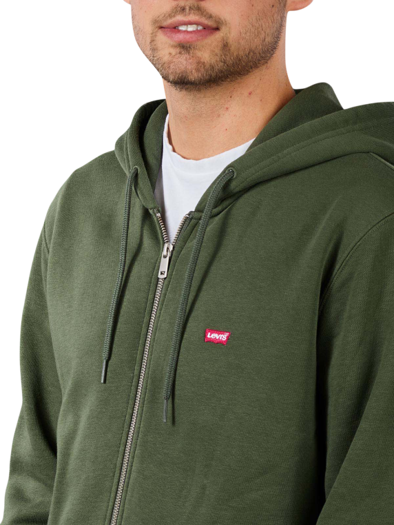 Der sportliche Zip Hoodie von Levi´s hat eine Kapuze mit integriertem Kordelzug, einen durchgehenden Reissverschluss und zwei vordere Taschen zum Einstecken der Hände. Die klassische Passform Regular Fit verleiht dem Herrenmodell seinen zeitlosen Look, welcher von dem dezenten, roten Label-Schriftzug abgerundet wird. Aus 80 % Baumwolle und 20 % Polyester besteht der Hoodie, der in der modischen Farbe Thyme gehalten ist.