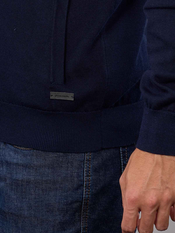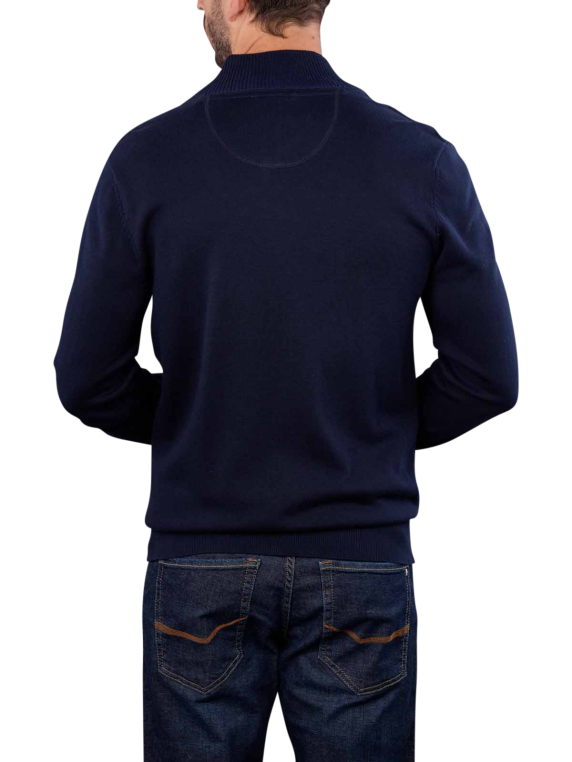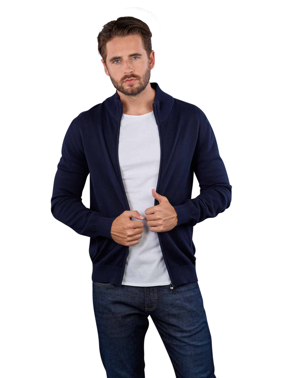 Der Pierre Cardin Knit Zip Cardigan in Navy Blazer ist ein eleganter und bequemer Cardigan für Männer. Hergestellt aus 100% Baumwolle, bietet dieser dunkelblaue Cardigan hervorragenden Tragekomfort. Er verfügt über einen Reißverschluss und keine Kapuze, was ihn ideal für verschiedene Anlässe macht. Der Cardigan ist pflegeleicht und sollte im Schonwaschgang bei 30°C gewaschen werden. Bleichen ist nicht erlaubt.