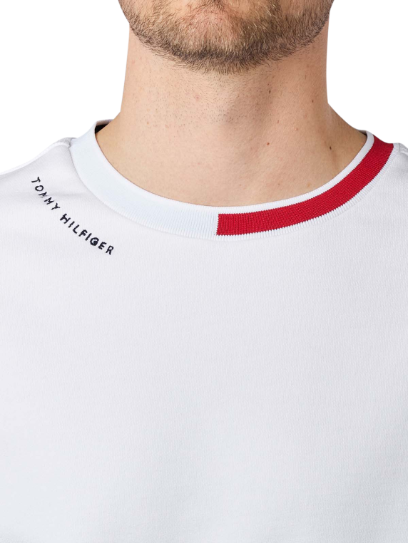 Der in zeitlosem Weiss gehaltene Tommy Hilfiger Jacquard Pullover Crew Neck besticht auf den ersten Blick durch seinen sportlichen Look. Das raffiniert gestaltete Logo am Rundhalskragen sowie die fein abgesetzten Bündchen runden das lässige Design des langärmligen Sweatshirts für Herren optimal ab. Schliesslich verspricht die Verarbeitung von 100% reiner und nachhaltig produzierter Bio-Baumwolle hohen Tragekomfort und ideale Passform.