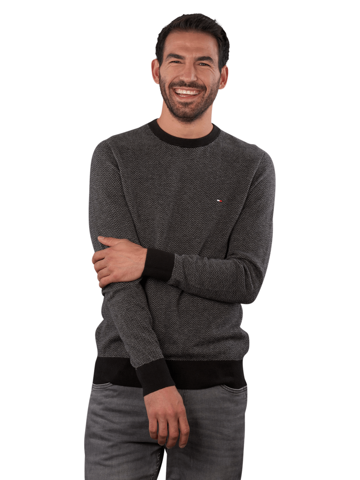 Der Tommy Hilfiger Pima Cash Pullover in Herringbone-Optik bietet einen Rundhalsausschnitt und ist in Schwarz, Grau, Weiß und Mehrfarbig erhältlich. Er besteht aus einer hochwertigen Mischung, die 84% Baumwolle enthält, und ist für eine schonende Maschinenwäsche bei 30°C geeignet. Der Pullover ist vielseitig kombinierbar und bietet durch den Kaschmiranteil einen angenehmen Tragekomfort.
