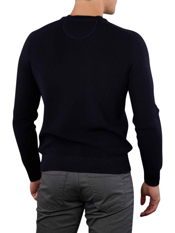 Der Brax Roy Pullover Crew Neck in Dunkelblau ist ideal für Männer. Dieser Rundhals-Pullover kombiniert 44% Baumwolle, 29% Polyacryl und 27% Wolle für optimalen Tragekomfort und Wärme. Er ist pflegeleicht und kann im Spezialschonwaschgang bei 30¬#x221E;C gewaschen werden. Nicht bleichen. Perfekt für die kalte Jahreszeit und vielseitig kombinierbar, ist dieser Pullover ein stilvoller und praktischer Begleiter.
