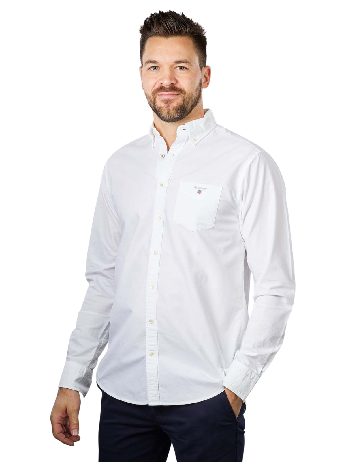 Mit dem Gant The Oxford Shirt Reg BD white bewahrt man auch im heissen Sommer einen kühlen Kopf. Denn das Hemd ist aus reiner Baumwolle gefertigt wodurch es besonders atmungsaktiv ist. Dazu lassen die kurzen Ärmel viel Luft an den Körper. Trotzdem passt das schlichte weisse Hemd mit seinen dezenten Details perfekt in den Beruf.