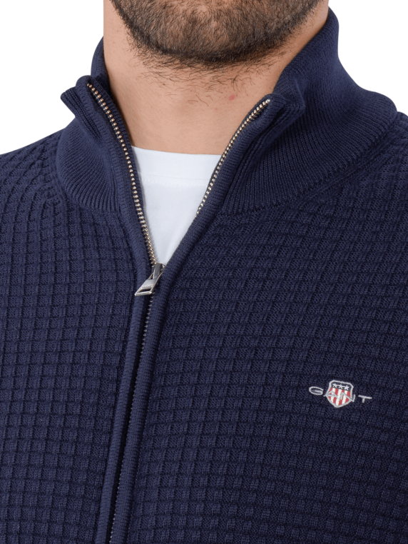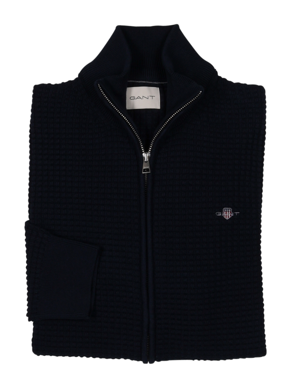Gant Zipped Textured Cardigan Cotton