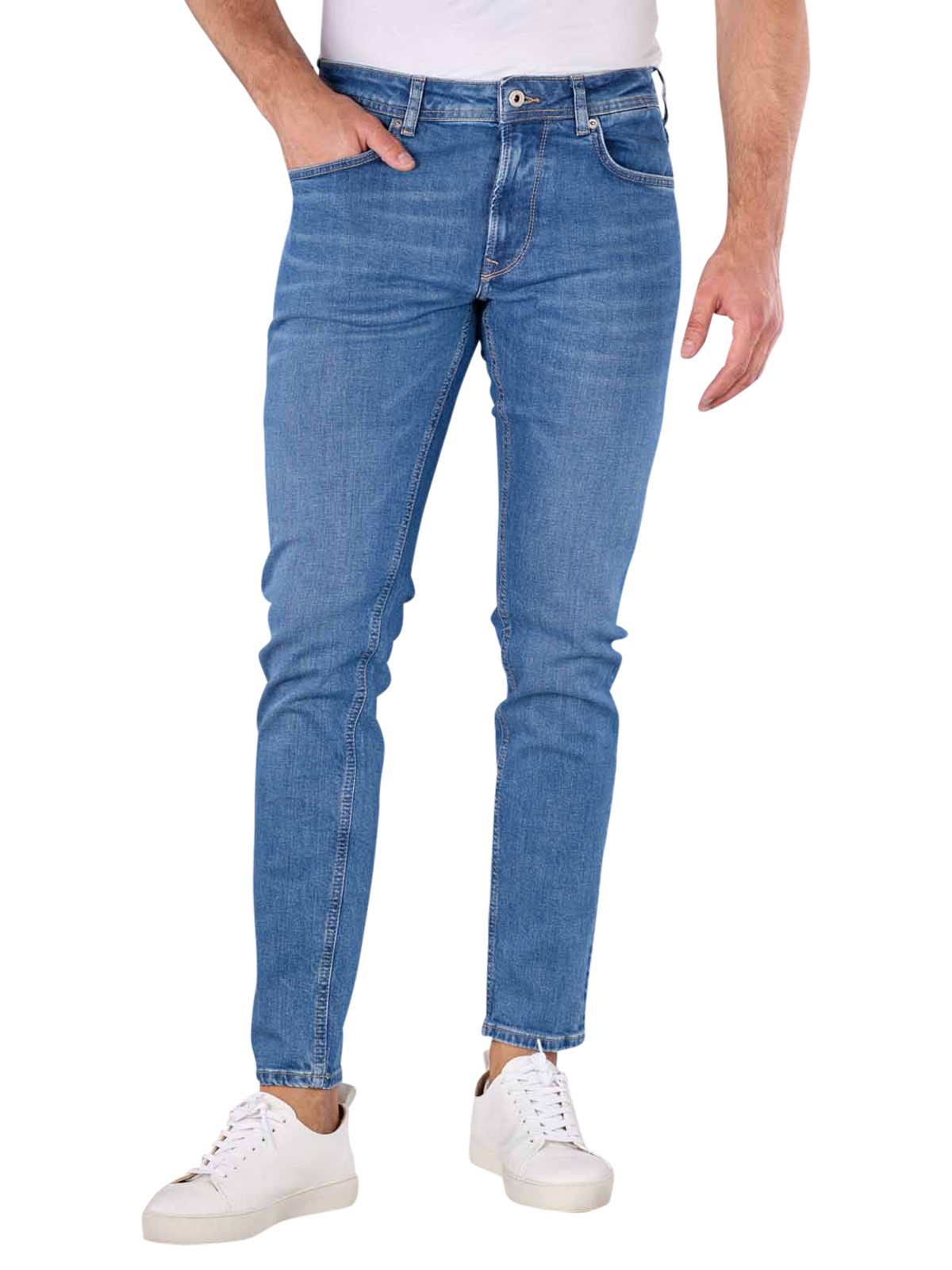 Die Pepe Jeans Stanley Tapered Fit in Medium Blue ist die ideale Wahl für Männer. Diese Jeans hat einen engen Beinausschnitt und eine mittlere Bundhöhe. Mit einer Standard-Stoffdicke und einem Stretchanteil bietet sie angenehmen Tragekomfort. Sie verfügt über einen Reissverschluss und eine Five-Pocket-Konfiguration. Die mittlere Waschung und die Pflegeanweisungen bei 30°C machen sie pflegeleicht. Hergestellt aus 99% Baumwolle und 1% Elasthan.