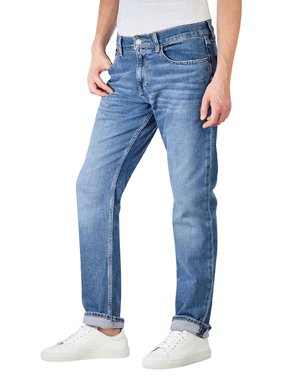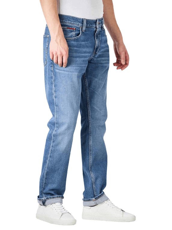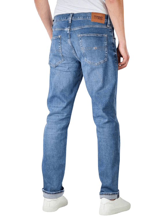 Die Tommy Jeans Ryan Straight Fit ist eine lässige Five-Pocket-Jeans in der Farbe Denim Medium. Die Beine sind schmal und gerade geschnitten. Die Jeans mit normalem Bund besteht aus Baumwolle mit Stretchanteil und wird vorne mit einem Reissverschluss verschlossen. Durch den Used-Look ist diese Jeans ein echter Allrounder. Es empfiehlt sich, sie bei 30 °C im Feinwaschgang zu waschen und an der Luft trocknen zu lassen.