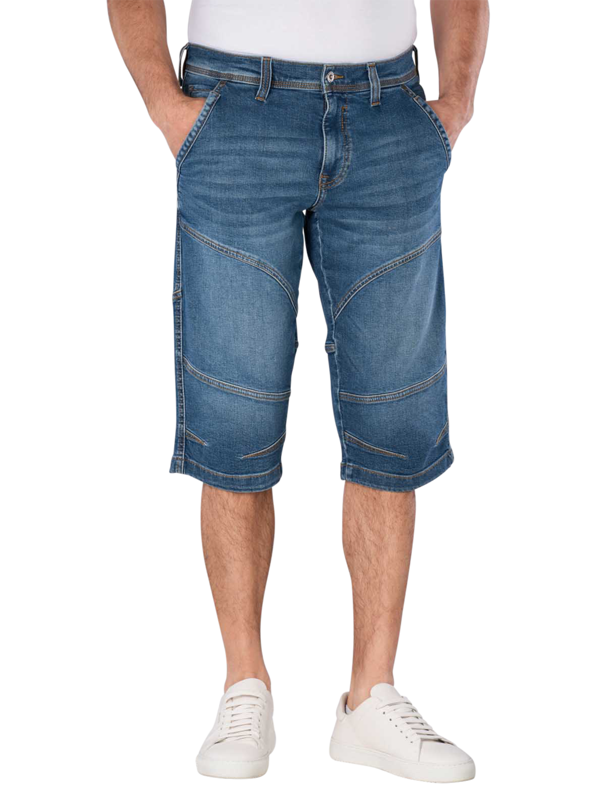 Die Mustang Fremont Shorts in Mittblau sind die ideale Wahl für modebewusste Männer. Mit ihrem modernen Five-Pocket-Design und einer praktischen 3/4-Länge bieten sie eine optimale Mischung aus Funktionalität und Stil. Der Stretchanteil sorgt für eine bequeme Passform, während die hochwertige Baumwollmischung für Atmungsaktivität sorgt. Diese Shorts sind perfekt für warme Tage und lassen sich vielseitig kombinieren. Pflegeleicht und strapazierfähig, halten sie auch bei häufigem Tragen form und Farbe.