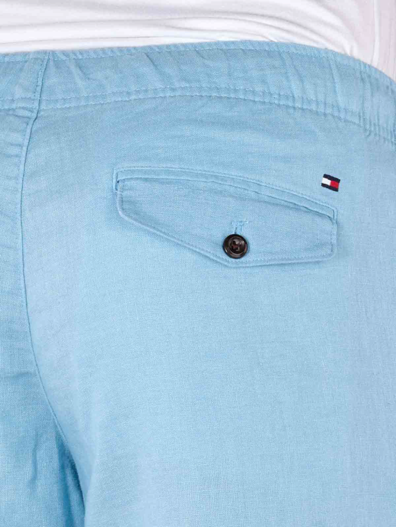 Die schicken Tommy Hilfiger Linen Harlem Herren Shorts in der Farbe Sleepy Blue stechen heraus mit hervorragender Qualität. Die Chino Shorts sind mit einem praktischen Gummizug im Bund inklusive Kordel ausgestattet. Der Stoff der Shorts ist aus einem dünnen und leichten Materialmix aus 71% Leinen und 29% Polyester gefertigt. Dieser Mix ist für den Sommer ideal: besonders atmungsaktiv und schnelltrocknend. Bitte bei 30°C im Normalwaschgang waschen.