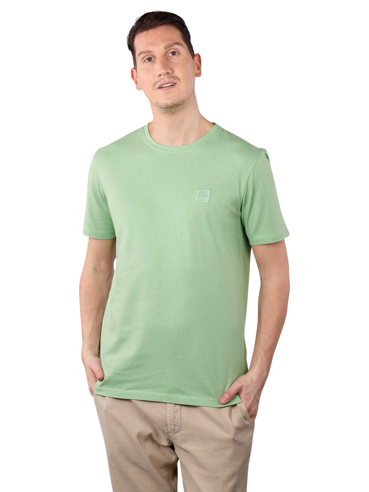 Das Shirt von Hugo Boss für Herren besteht aus reiner Baumwolle. Daher ist es sehr weich und leicht und zusätzlich freundlich zur Haut. Es wird empfohlen, das Shirt bei höchstens 110 Grad zu bügeln, um das Material zu schonen. Gewaschen werden sollte das Oberteil im Schonwaschgang bei 30 Grad. Trocknen im Trockner und eine chemische Reinigung werden nicht empfohlen.