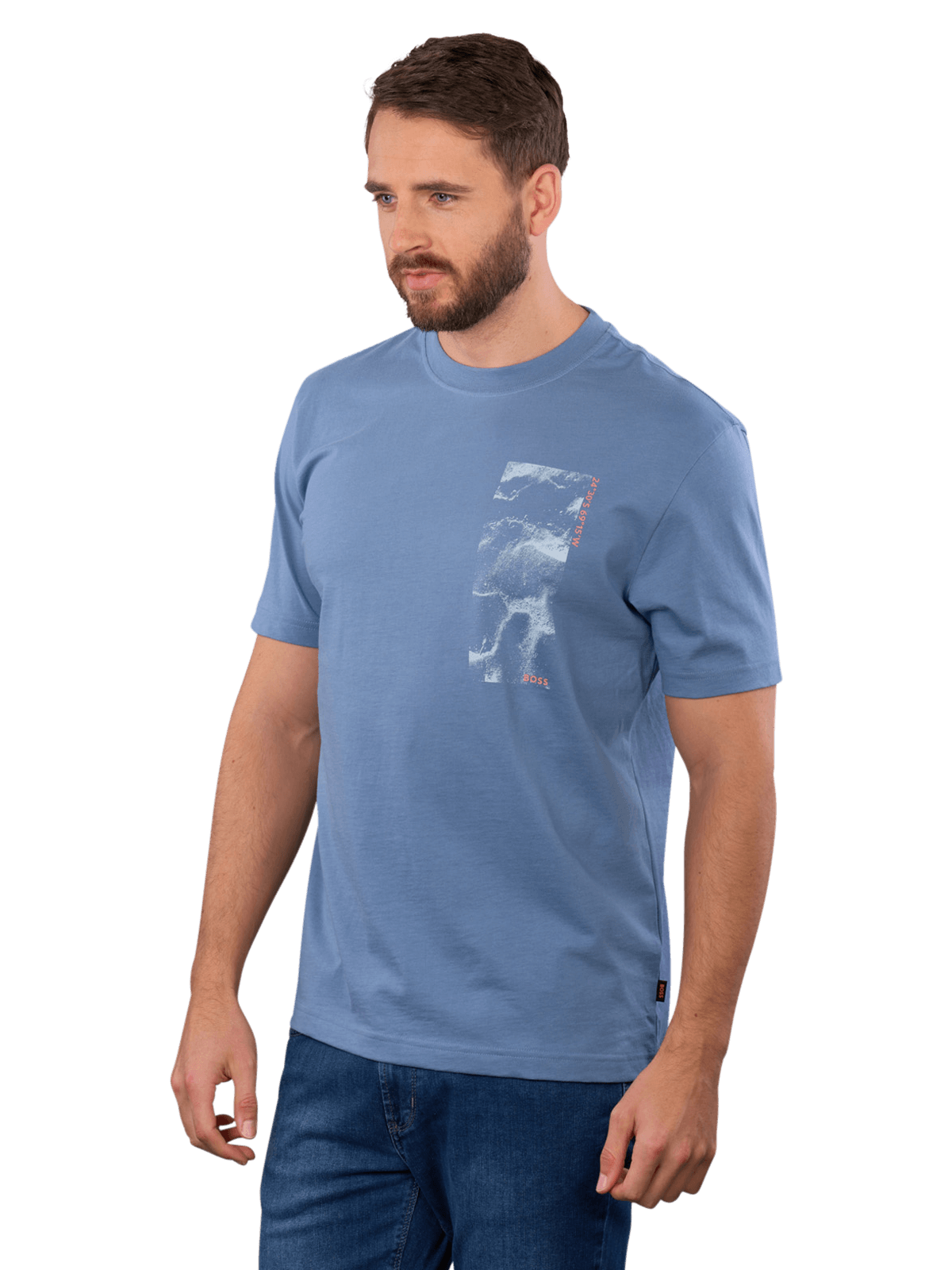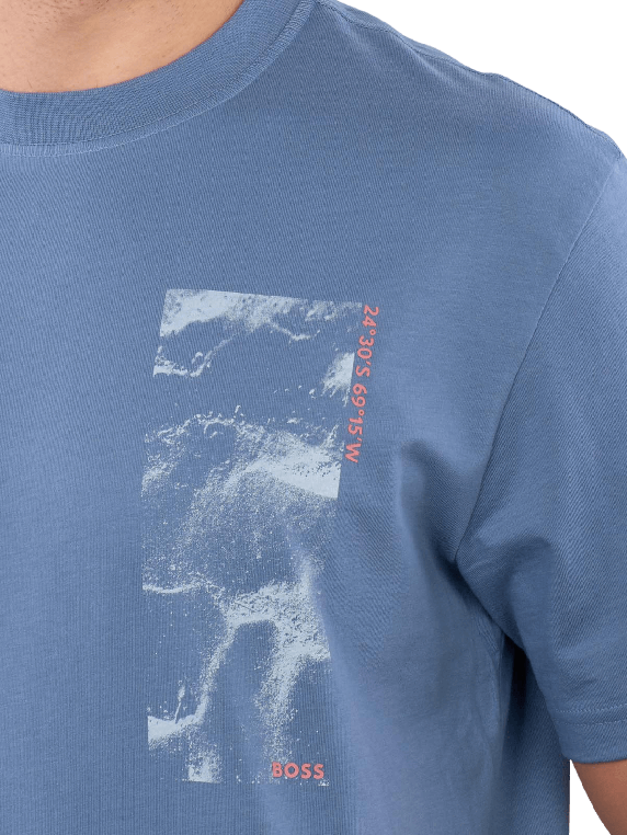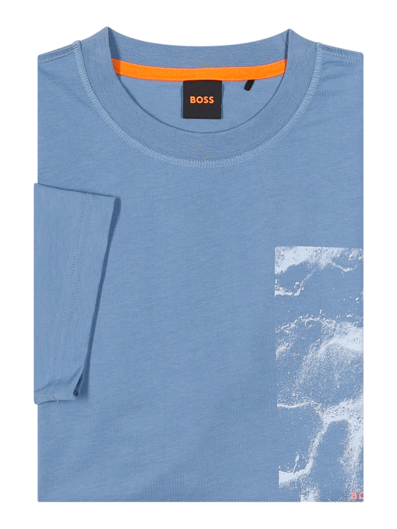 Entdecken Sie das Boss Orange Te-Atacama T-Shirt in der trendigen Farbe Hellblau. Mit seinem modischen Chest Print und dem klassischen Rundhalskragen bietet dieses T-Shirt eine perfekte Kombination aus Stil und Komfort. Hergestellt aus 100% hochwertiger Baumwolle fühlt es sich angenehm auf der Haut an. Ideal für den Alltag oder lässige Ausflüge, ist es pflegeleicht und eignet sich für den Schonwaschgang bei 30°C. Verleihen Sie Ihrer Garderobe einen Hauch von Eleganz mit diesem modischen Teil!
