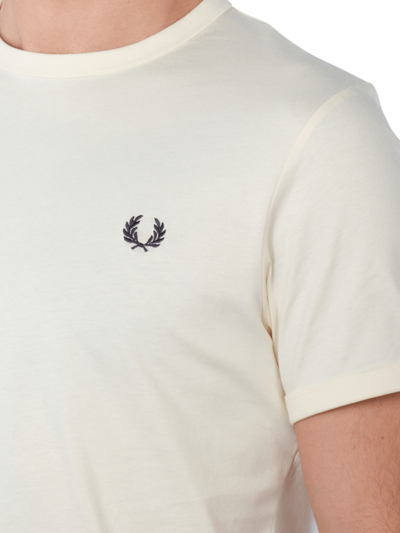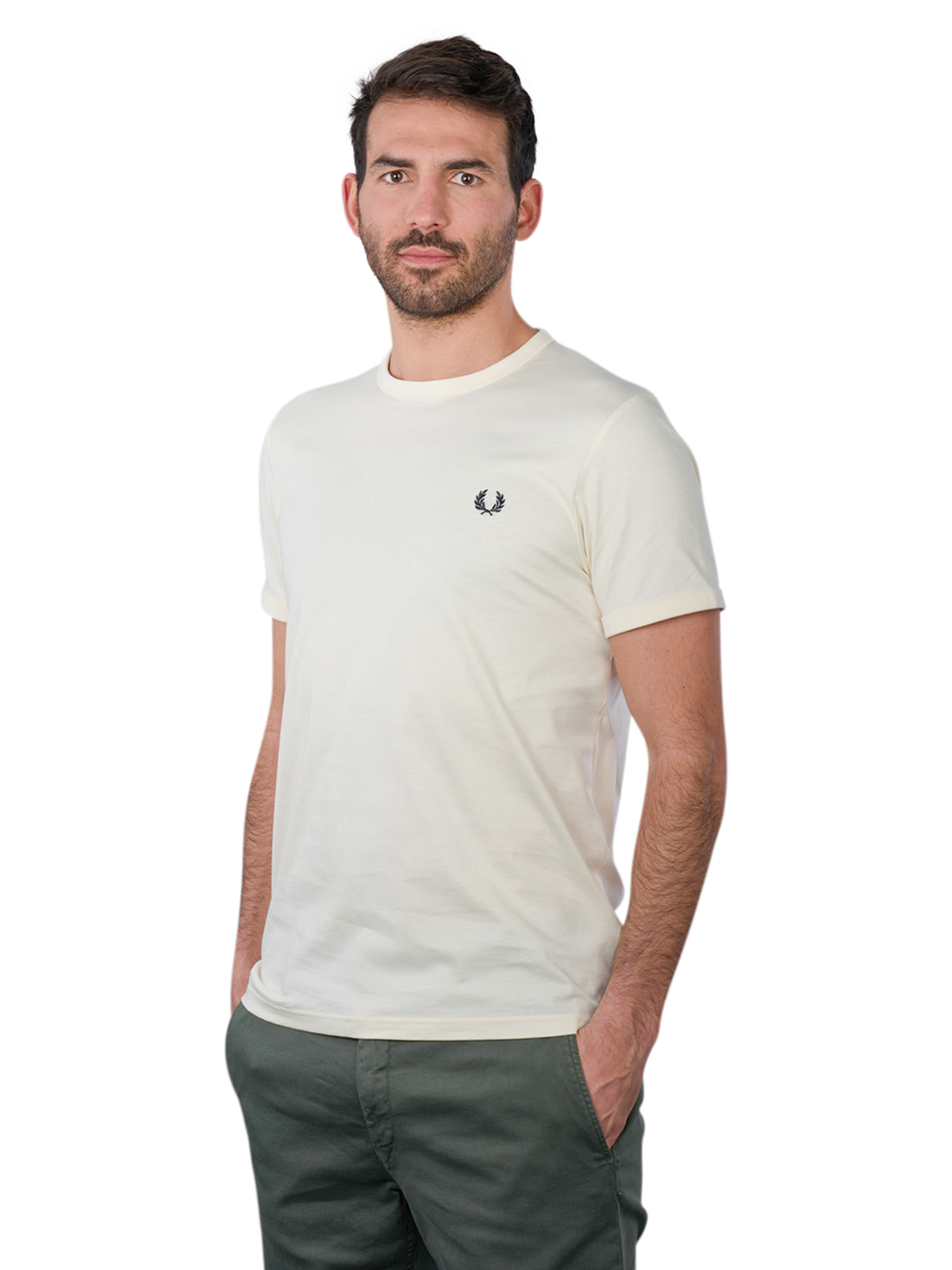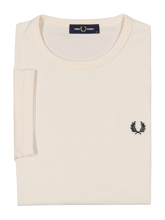 Das Fred Perry Ringer T-Shirt in edlem Ecru bringt klassischen Stil in Ihre Garderobe. Hergestellt aus 100% Baumwolle, bietet es höchsten Tragekomfort und eine angenehme Passform. Der Rundhalskragen und das zeitlose Design machen es zum perfekten Begleiter für lässige Freizeitlooks. Waschmaschinenfest bis 40°C und pflegeleicht, bleibt es auch nach mehrmaligem Waschen in Topform. Ideal für den modernen Mann, der Wert auf Qualität und Stil legt.