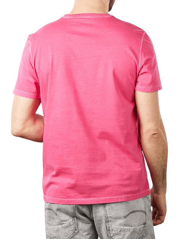 Das T-Shirt ist Magenta Pink, im Rundhalsausschnitt vorhanden und hat kurze Ärmel sowie ein schlichtes Muster. Das Shirt hat keine Brusttaschen und ist casual. Logos sind dezent sichtbar. Es hat eine eine Regular Fit Passform und besteht zu 100% aus Baumwolle. Es ist waschbar im Schonwaschgang bei 40°C. Das T-Shirt nicht bleichen, heiss bügeln, chemisch reinigen oder im Schatten trocknen.