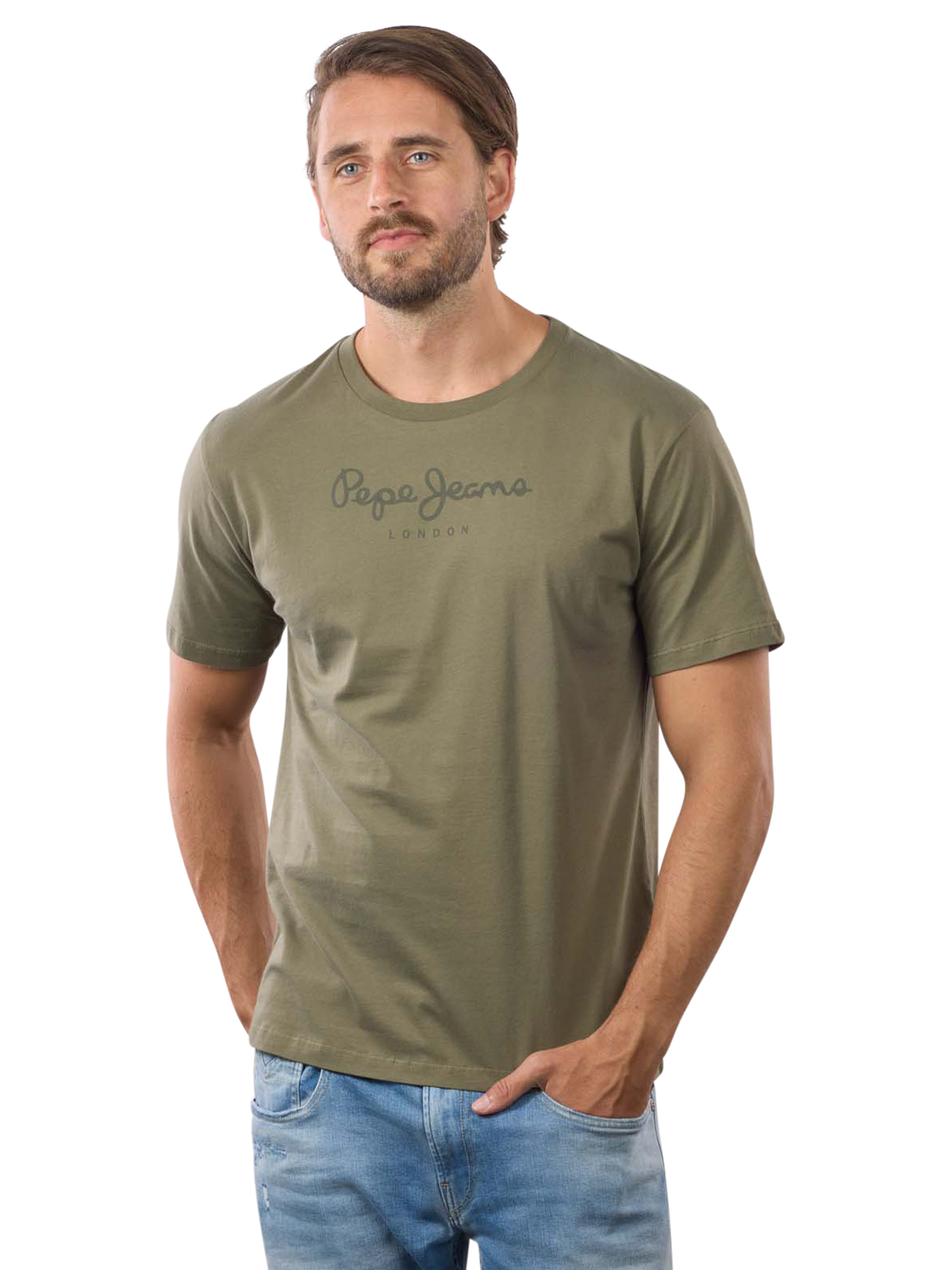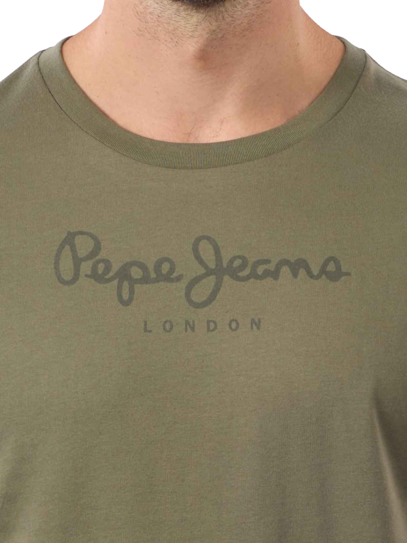 Das Pepe Jeans T-Shirt Eggo in der Farbe Militar ist ein schönes T-Shirt mit kurzen Ärmeln. Es ist im Casual-Stil gehalten und hat einen Rundhalsausschnitt. Auf der Brust ist das Pepe Jeans London Logo gut sichtbar aufgedruckt. Geschnitten ist dieses Pepe Jeans T-Shirt im Regular Fit, sodass es locker sitzt. Es ist aus 100 Prozent Baumwolle hergestellt und kann einfach bei 30 Grad in der Waschmaschine gewaschen werden. In der Herstellung ist auf das Eco-Programm Pepe Future gesetzt worden.