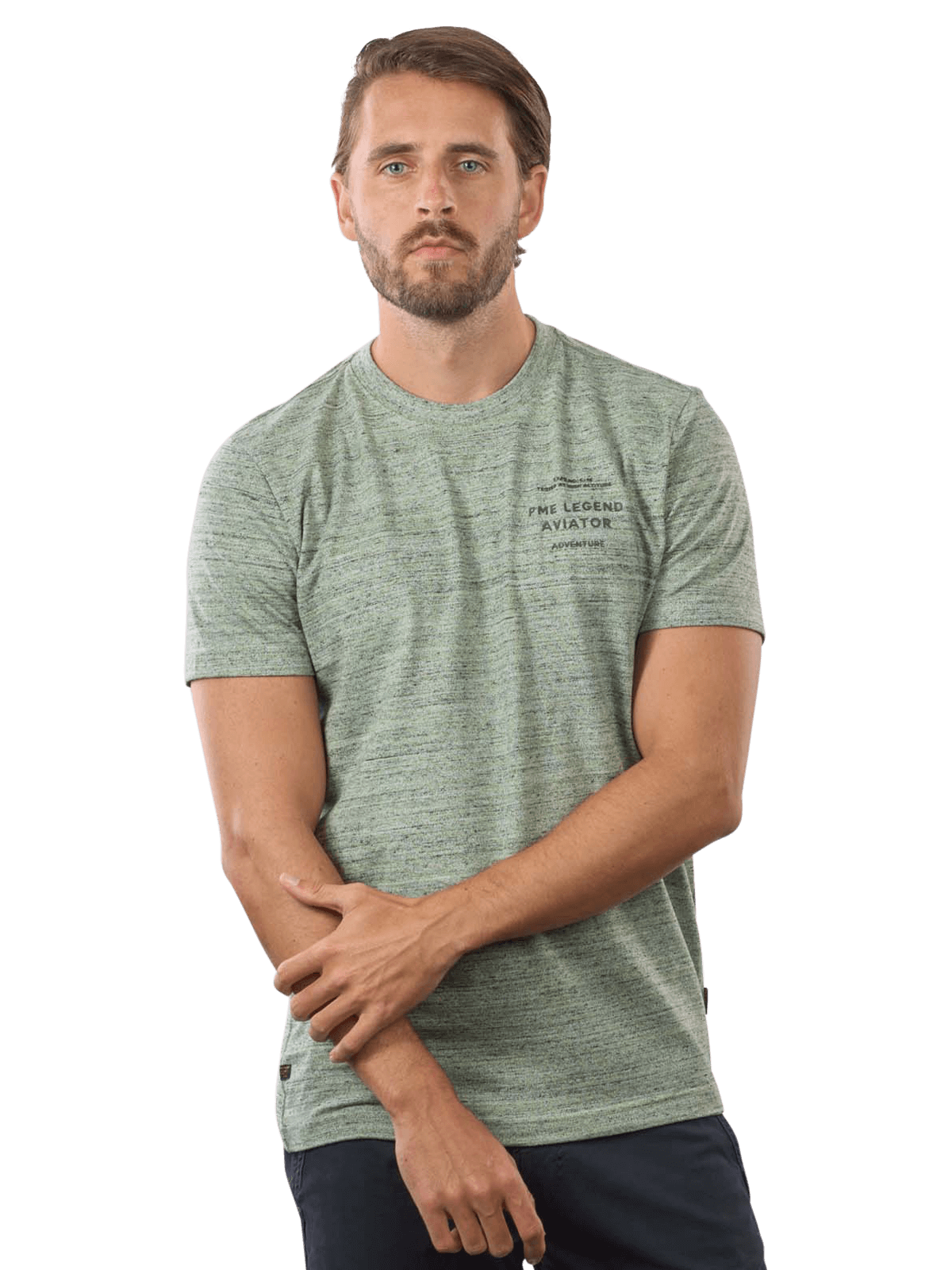 Dieses Herren T-Shirt von PME ist in modischen Dark Ivy Tönen gehalten und weist ein dezentes meliertes Muster auf. Ein gerader Schnitt mit kurzem Arm und einem runden Halsausschnitt sorgt für eine legere Passform. Auf Brusthöhe befindet sich das PME Aviator Legend Logo, das in schwarzen Buchstaben aufgedruckt ist. Das Material besteht aus einem Baumwoll-Polyester Gemisch, das sich auf der Haut angenehm anfühlt und gut im Schonwaschgang in der Waschmaschine gewaschen werden kann.