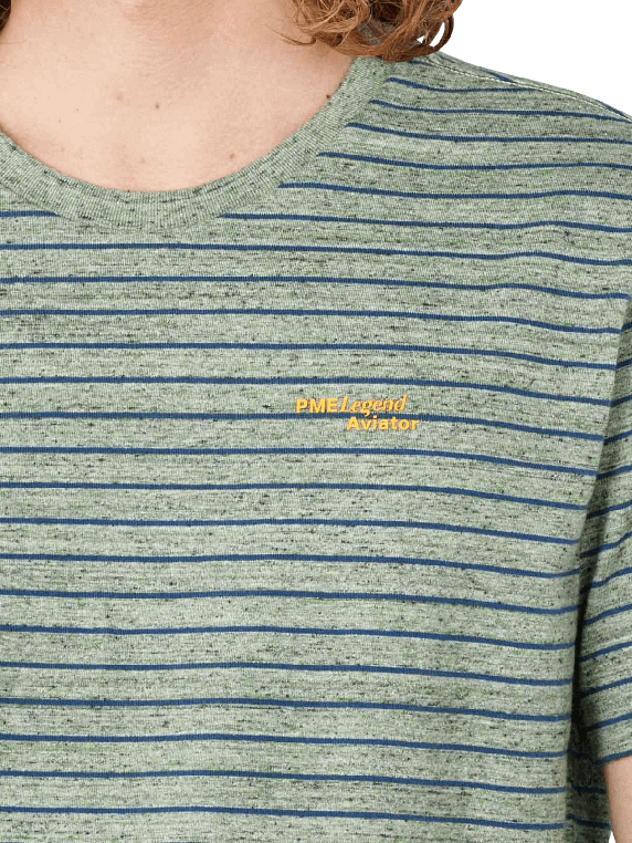 Dieses PME Legend Short Sleeve T-Shirt Jersey Stripes ist ein so lässiges wie bequemes Oberteil für Herren. Das T-Shirt wahlweise in den Farben Deep Lichen Green und Salute mit kurzem Arm und Rundhalsausschnitt ist attraktiv gestreift und hat keine Taschen. An dem pflegeleichten Shirt aus Baumwolle mit einem Anteil an Polyester ist das Markenlogo dezent über der linken Brust sichtbar.