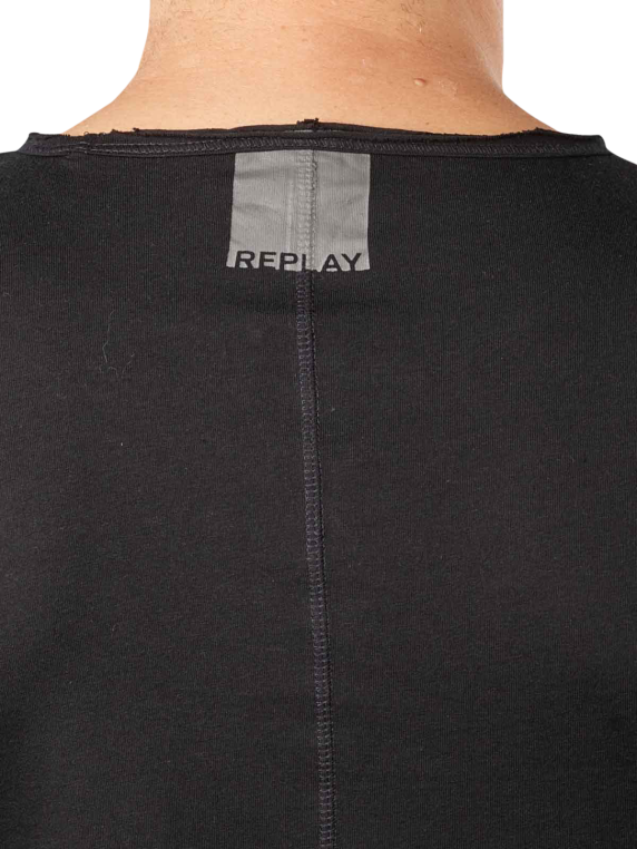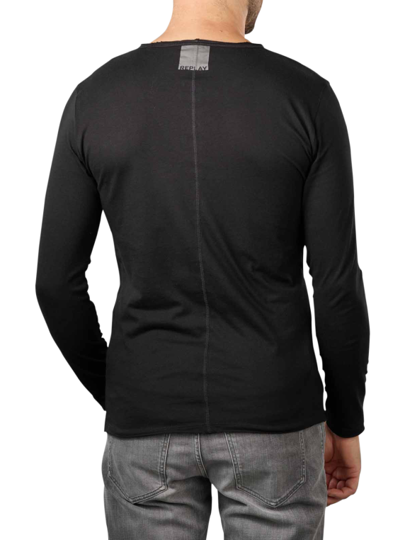 Das langärmelige, schwarze Replay Cotton T-Shirt black ist ein tolles Basic mit schönen Details. Dazu gehören nicht nur die aussen liegenden Nähte oder der graue Label Print im Nacken. Zusätzlich wurde dem runden Halsausschnitt ein Used Look in Form von abgewetzten Bereichen gegeben. So wird das Shirt zu einem lässigen Must have für die Freizeit