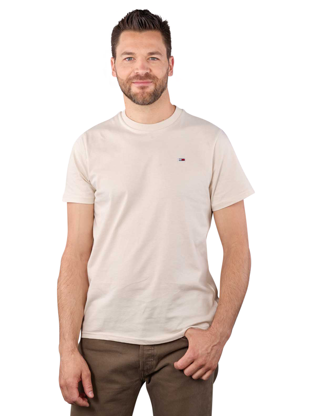 Das Tommy Jeans Jersey T-Shirt im Slim Fit ist ein vielseitiges Basic für jeden Kleiderschrank. Mit kurzen Ärmeln und einem klassischen Rundhalsausschnitt ist es ideal für den täglichen Gebrauch. Das unifarbene Design und das dezente Logo verleihen ihm einen zeitlosen und dennoch modernen Look. Das weiche Jersey-Material bietet angenehmen Tragekomfort und ist perfekt für lässige Outfits geeignet. Ob solo getragen oder unter einem Hemd oder Pullover - dieses T-Shirt ist ein unverzichtbares Teil Ihrer Garderobe. Setzen Sie auf Komfort und Stil mit diesem hochwertigen Slim-Fit-Shirt von Tommy Jeans.
