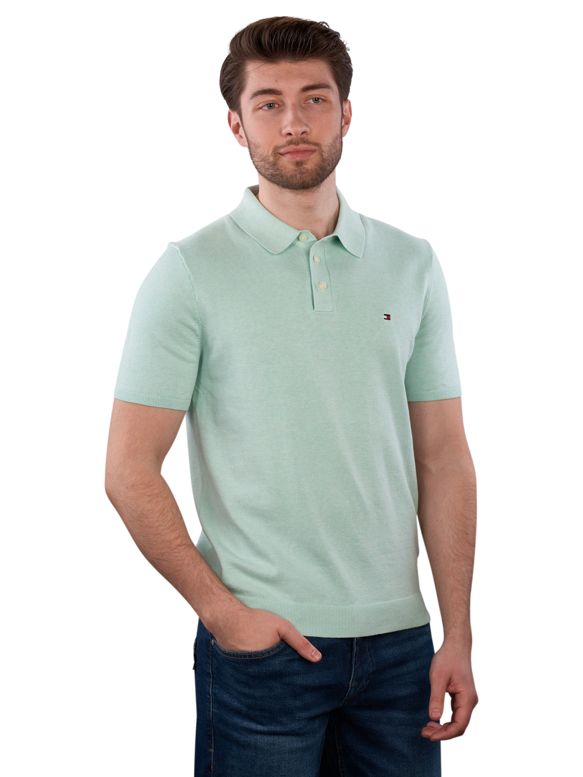 Das Tommy Hilfiger Polo Essential Knitted in Minty Essence Heather bietet einen klassischen Polo-Kragen und eine bequeme Passform. Es ist aus 100% Baumwolle gefertigt und unterstützt die Better Cotton Initiative (BCI). Dieses Poloshirt kann bei 30°C im Schonwaschgang gewaschen werden und ist pflegeleicht. Es eignet sich für Freizeitaktivitäten und legere Anlässe, wobei es gleichzeitig einen sportlichen Look vermittelt.