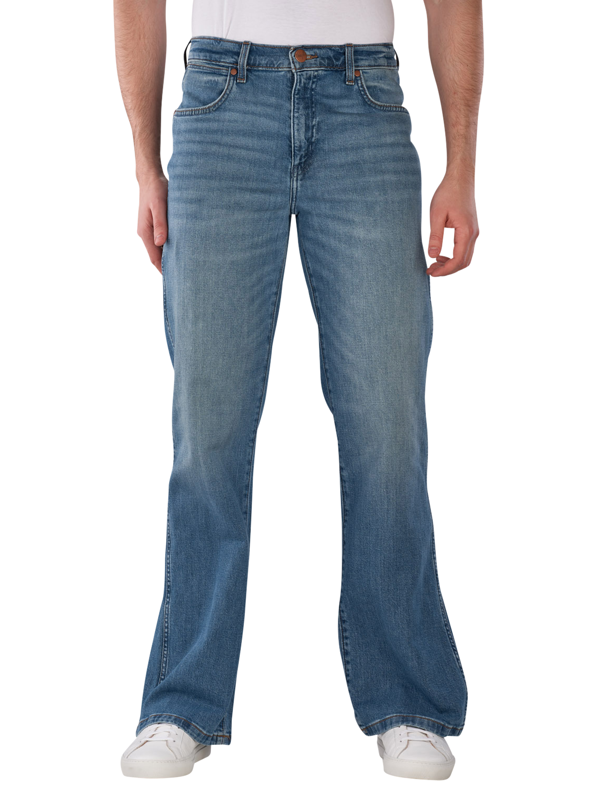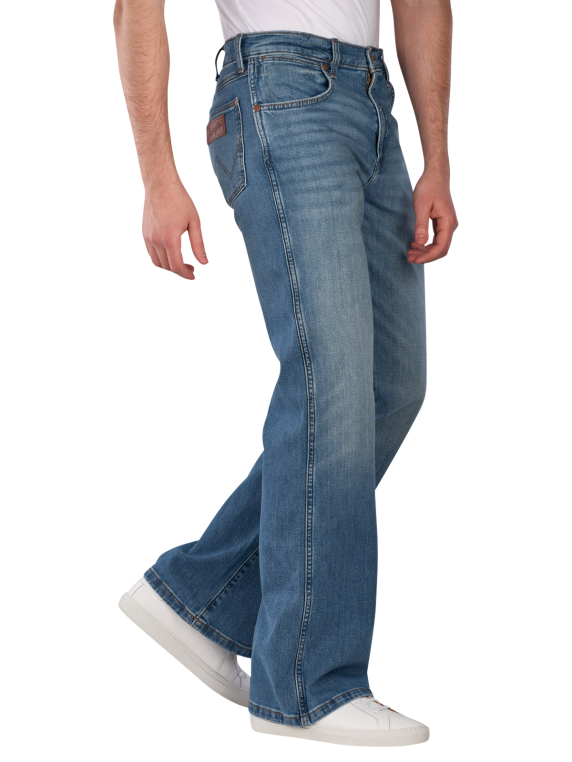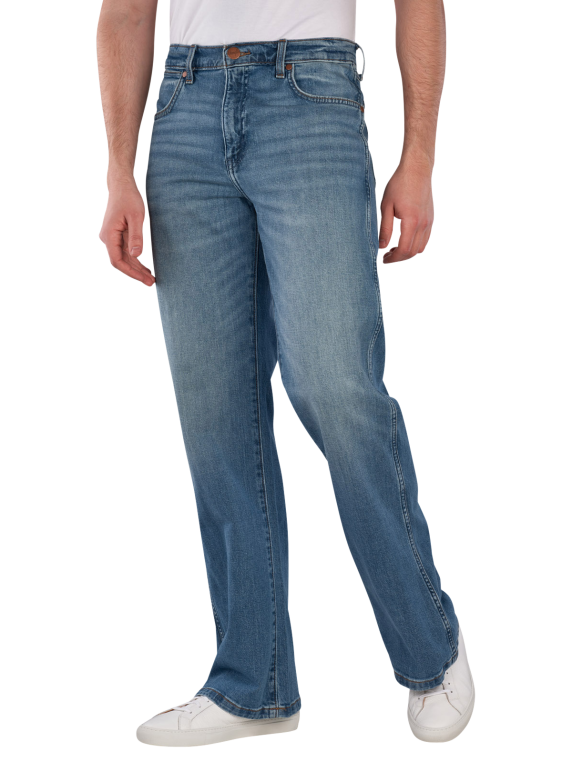 Die Wrangler Bootcut Jeans Loose Fit Harbor Blue bietet einen geraden und weiten Beinausschnitt sowie eine mittlere bis hohe Bundhöhe. Sie ist in einem mittleren Blau gehalten und für Männer konzipiert. Die Jeans verfügt über einen Five-Pocket-Stil und einen Reißverschluss. Mit ihrem Stretchanteil sorgt sie für Bewegungsfreiheit und Komfort. Die mittlere Waschung ermöglicht eine einfache Pflege bei 30°C im Normalwaschgang.
