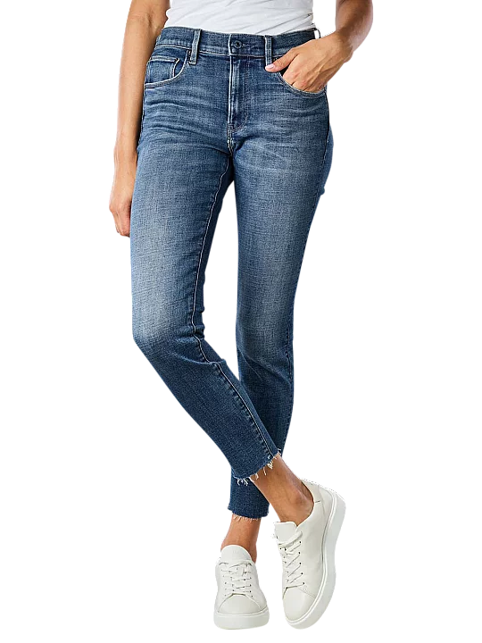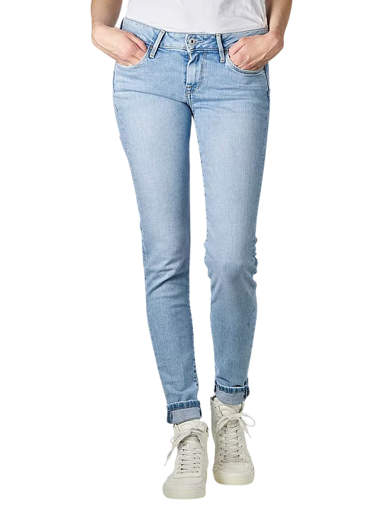 Neben der Jeansfarbe kannst du bei Skinny Jeans ebenfalls mit der Bundhöhe spielen: Wähle eine High Waist und dein Körper wirkt optisch grösser und dadurch schlanker.