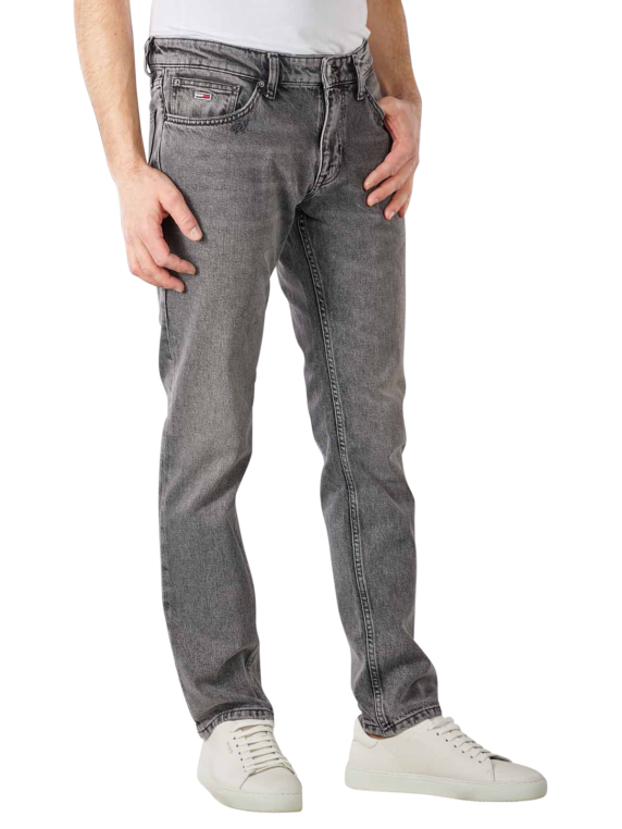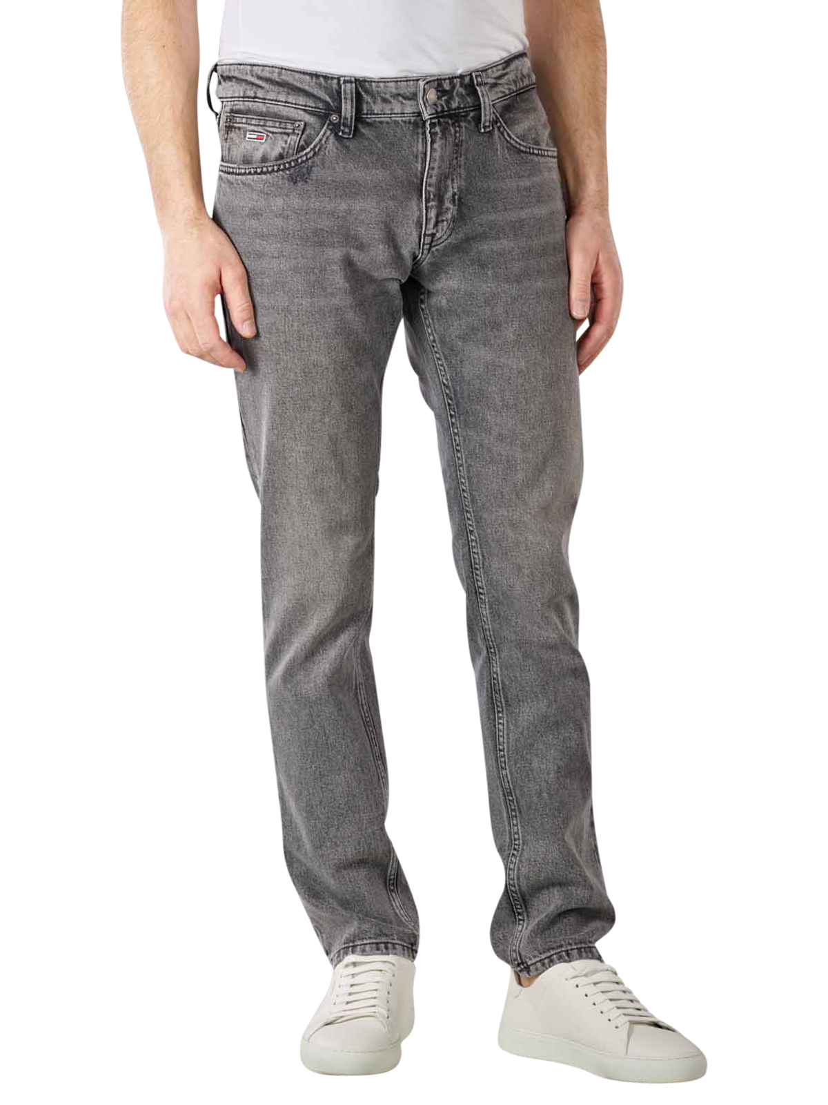 Die Tommy Jeans Scanton Slim Fit im Farbton Denim Black vereint den klassischen Five-Pocket-Stil mit dezenten Waschungen und optischen Sitzfalten. Sie besteht aus einem Baumwoll-Denim mit Stretchanteil und bietet mit mittlerer Bundhöhe und einem engen, gerade verlaufenden Bein auch bei Freizeitaktivitäten einen komfortablen Sitz. Waschbar bei 30 °C und bei niedrigen Temperaturen trocknergeeignet ist die bequeme Herrenjeans zudem sehr pflegeleicht.