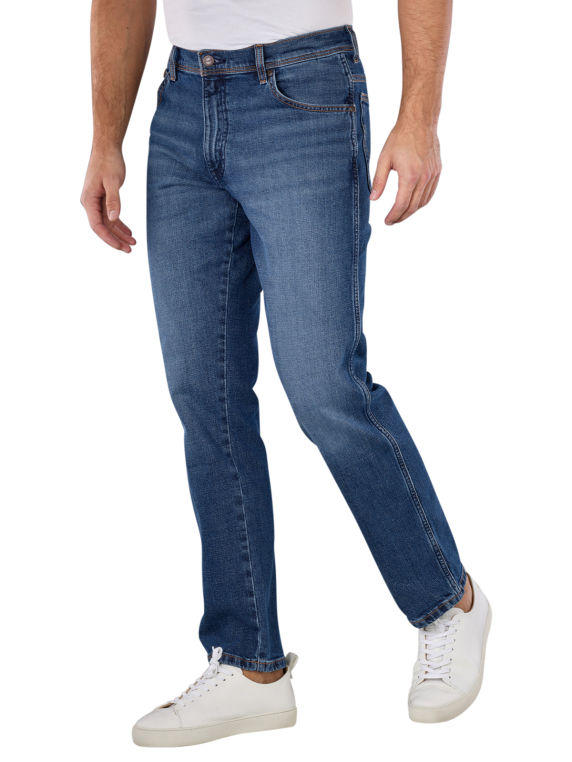 Die Wrangler Texas Jeans Straight Fit Raindrop ist ideal für Männer und überzeugt durch ihre gerade Beinführung und eine mittelhohe bis hohe Bundhöhe. Die Jeans präsentiert sich in einem mittelblauen Farbton und besteht aus 99% Baumwolle und 1% Elasthan, was sie dehnbar und bequem macht. Ausgestattet mit einem Reissverschluss und fünf Taschen ist sie perfekt für den Alltag. Pflegeleicht bei 30°C Normalwaschgang.